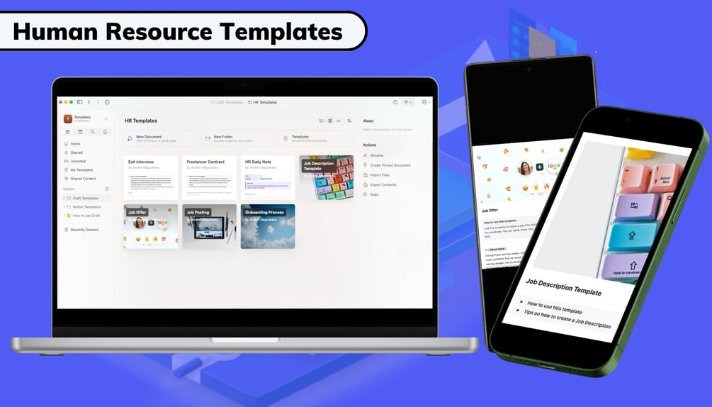 Streamline your human resources workflow with this comprehensive bundle of 7 HR templates for Craft.do. Designed for HR professionals, hiring managers, and business owners, these templates help you manage critical HR processes with ease.